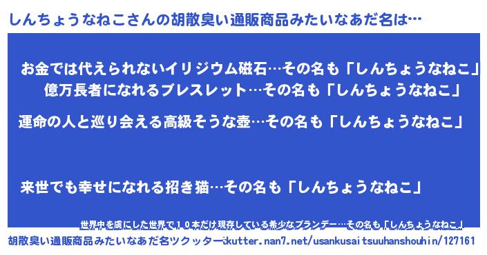 | ファンタジー風あだ名 | 『エターナルシンチョウナネコー』 |