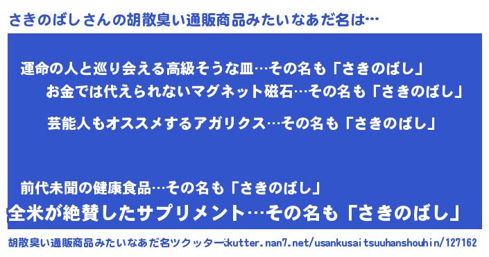 | ヒーロー風カッコイイあだ名 | 『最強戦士サキノバシ』『幻影騎士サキ』 |