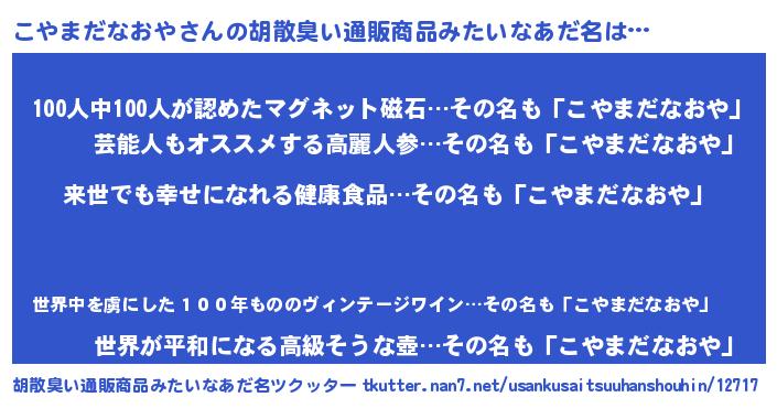 こやまだなおやさんの胡散臭い通販商品みたいなあだ名をツクッター!