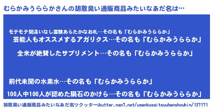 | 欧米人風あだ名 | 『ウサインむらかみうららか』 |