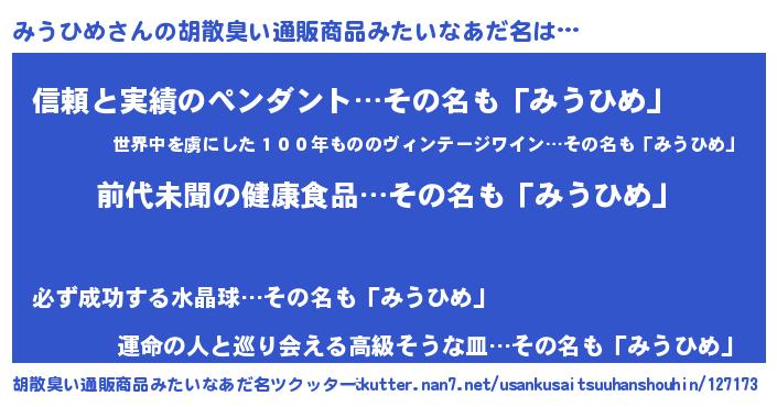 | 意味不明あだ名 | 『永久保存みうひめ』 |