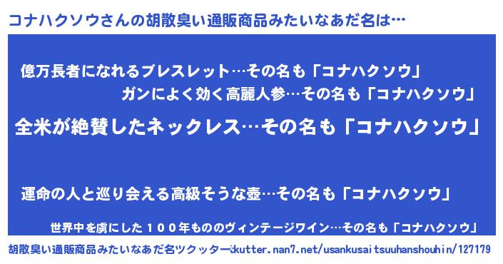 | 意味不明あだ名 | 『とにかく怪しいコナハクソウ』 |
