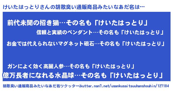 | ヘコむあだ名 | 『けいたはっとり(小並感)』『けいふぇ~』 |