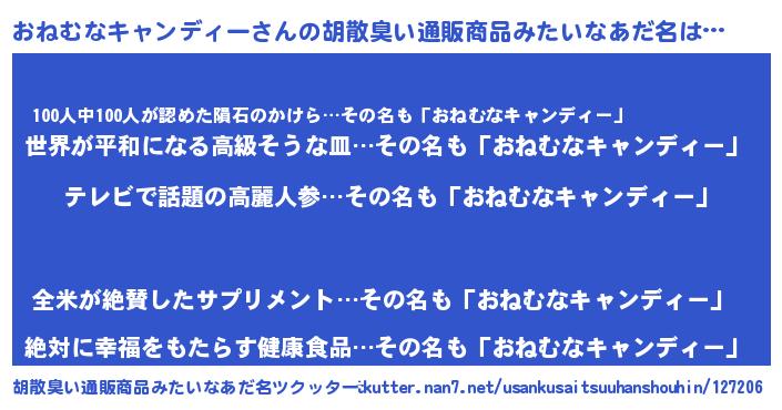 おねむなキャンディーさんの胡散臭い通販商品みたいなあだ名をツクッター!