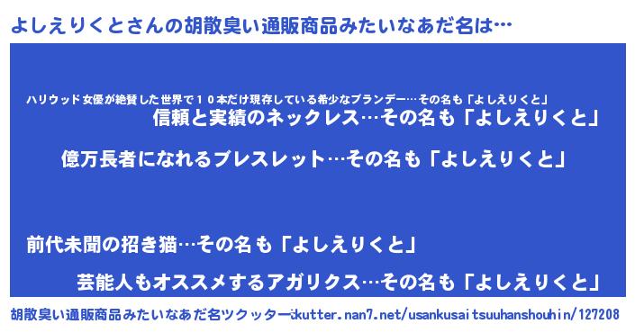| 恥ずかしいあだ名 | 『プリティーよしえりくと』『よしちん』 |