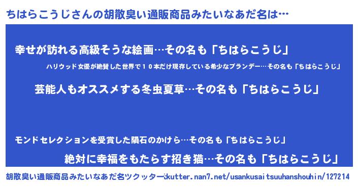 | 意味不明あだ名 | 『自称ちはらこうじ』 |