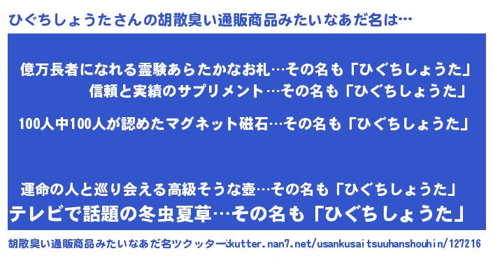 | ヒーロー風カッコイイあだ名 | 『正義の使者ひぐちしょうた』 |