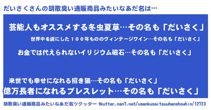 | ヘコむあだ名 | 『だいにゅー』『だいさく(震え声)』 |