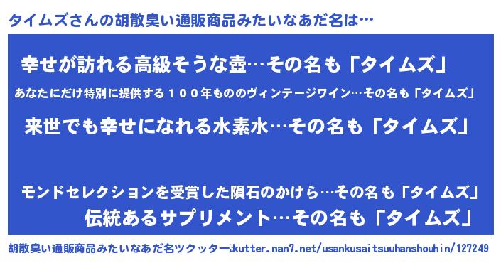 | 男性向けラノベタイトル風あだ名 | 『タイムズという概念が存在しない退屈な世界 』 |