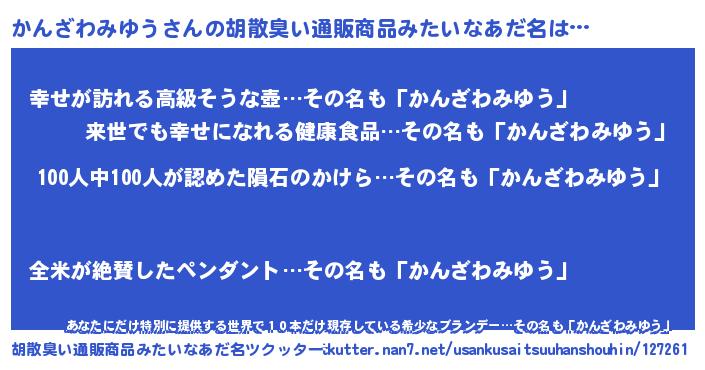 | ヘコむあだ名 | 『牛乳』『かんざわみゆう(笑)』 |