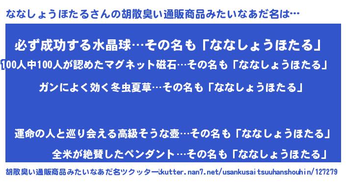 | 意味不明あだ名 | 『自称ななしょうほたる』 |