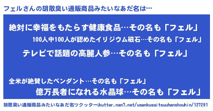 | 意味不明あだ名 | 『自称フェル』『永久保存フェル』 |
