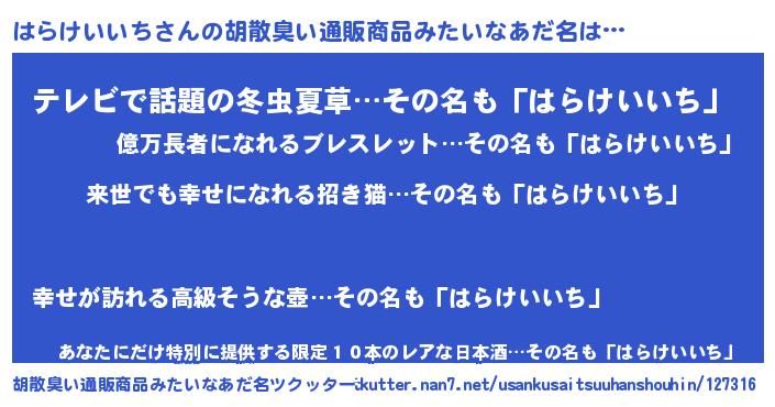 | 恥ずかしいあだ名 | 『はらちん』『ハラケイイチデラックス』 |