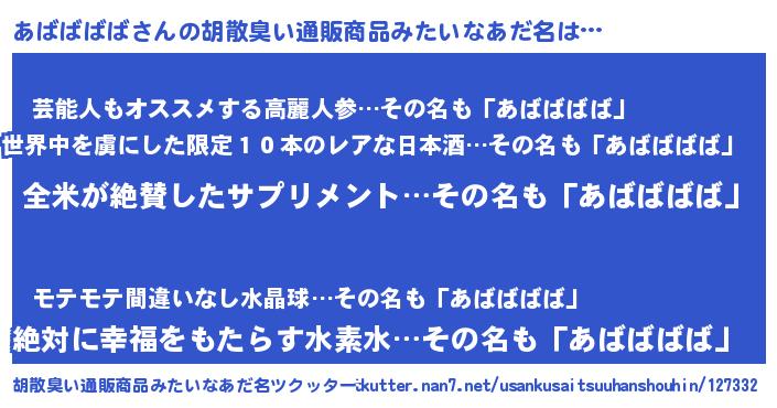 | 意味不明あだ名 | 『とにかく怪しいあばばばば』 |