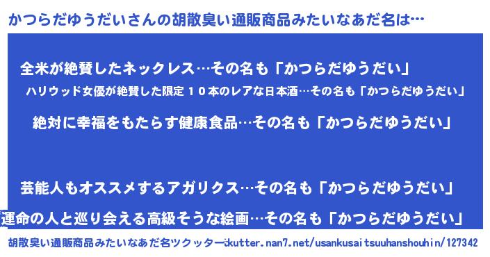 | ヘコむあだ名 | 『かつらだゆうだい(笑)』『かつっぺ』 |