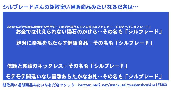 | 意味不明あだ名 | 『永久保存シルブレード』 |
