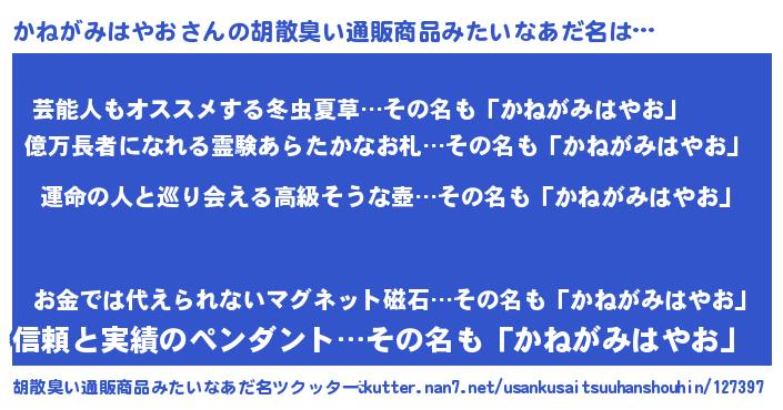 | 意味不明あだ名 | 『かねがみはやおフォーエバー』 |