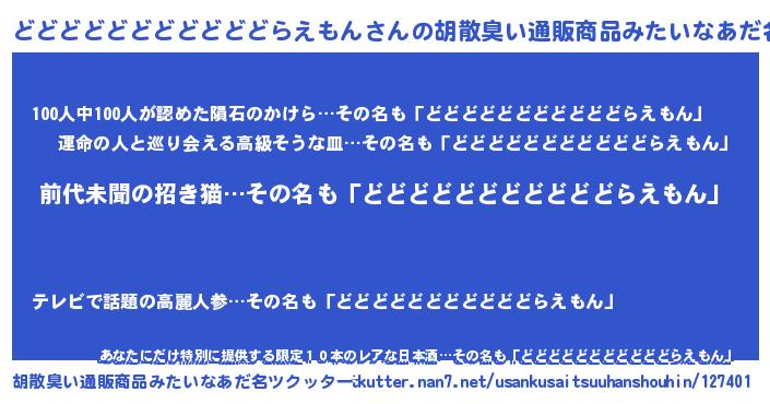 | 女子向けラノベタイトル風あだ名 | 『異世界でカフェどどどどどどどどどどどらえもんを開店しました。』 |