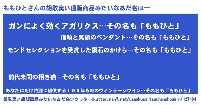 | 男性向けラノベタイトル風あだ名 | 『ノーゲーム・ノーモモヒト』 |