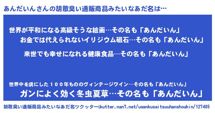 | 意味不明あだ名 | 『永久保存あんだいん』『自称あんだいん』 |
