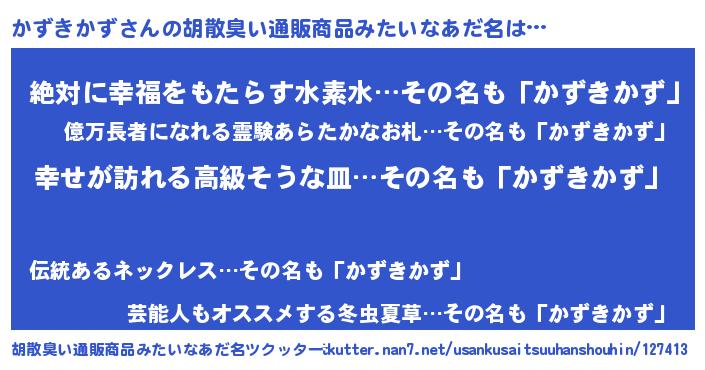 | ヘコむあだ名 | 『牛乳』『かずきかず(爆)』 |