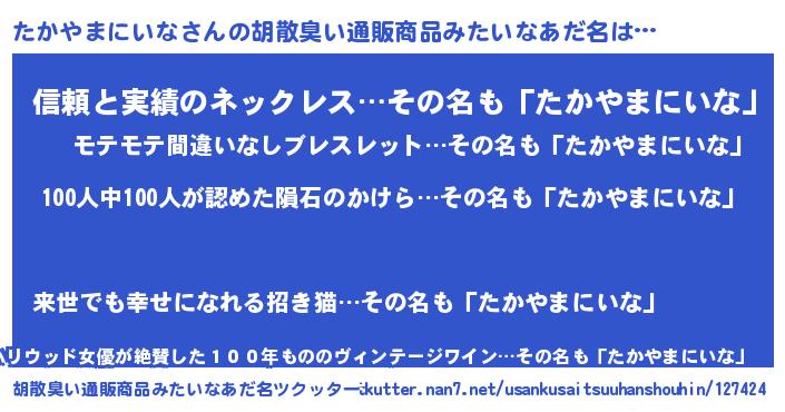 | ポケモン風あだ名 | 『タックウザ』『ヒタカヤマニイナ』 |