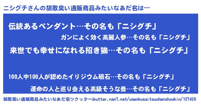 | ヘコむあだ名 | 『ニシグチ(小並感)』『ニシっちょ』 |