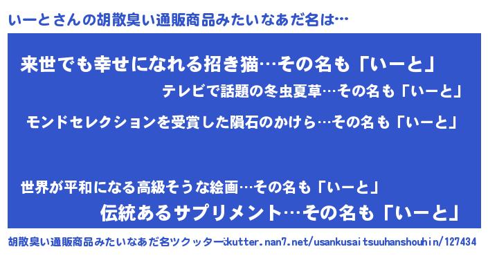 いーとさんの胡散臭い通販商品みたいなあだ名をツクッター!