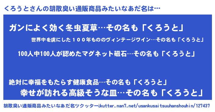 | 男性向けラノベタイトル風あだ名 | 『緋弾のクロウト』『魔弾の王とくろうと』 |