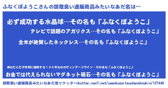 | 意味不明あだ名 | 『とにかく怪しいふなくぼようこ』 |