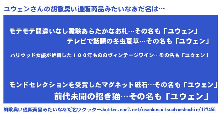| ヘコむあだ名 | 『ユウにー』『ユウェン(震え声)』 |