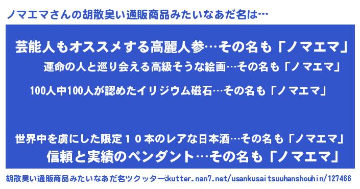 | ヘコむあだ名 | 『ノマっぺ』『レバニラ』『ノマもー』 |