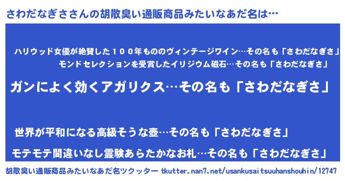 | 意味不明あだ名 | 『自称さわだなぎさ』 |