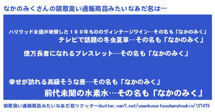 | 意味不明あだ名 | 『ヨモギ科なかのみく属』 |