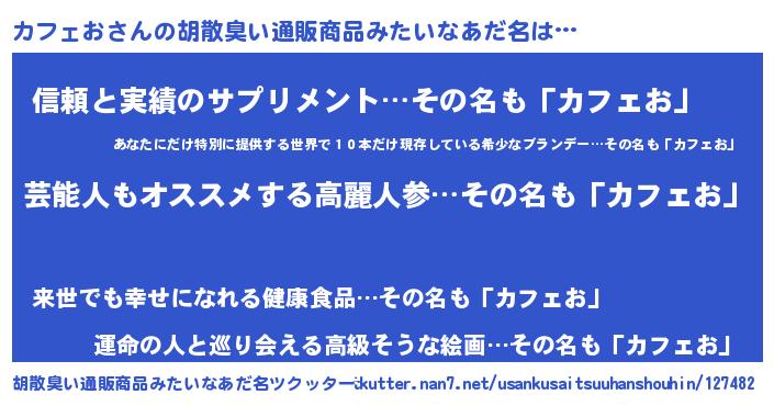 | ヘコむあだ名 | 『カフを』『つくし』『カフェお(笑)』 |