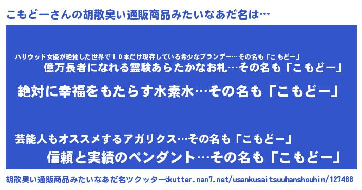 | ヘコむあだ名 | 『こもどー(苦笑)』『こもぷりん』 |
