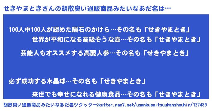 | ヘコむあだ名 | 『せきやまとき(小並感)』『牛乳』 |