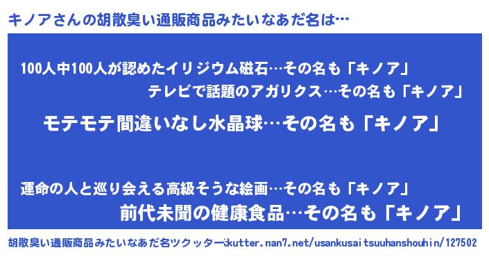 | 男性向けラノベタイトル風あだ名 | 『キノアアートオンライン』 |