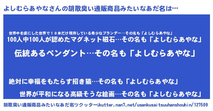 | 意味不明あだ名 | 『とにかく怪しいよしむらあやな』 |