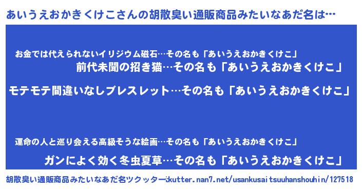 | ヘコむあだ名 | 『あいにー』『あいうえおかきくけこ(笑)』 |