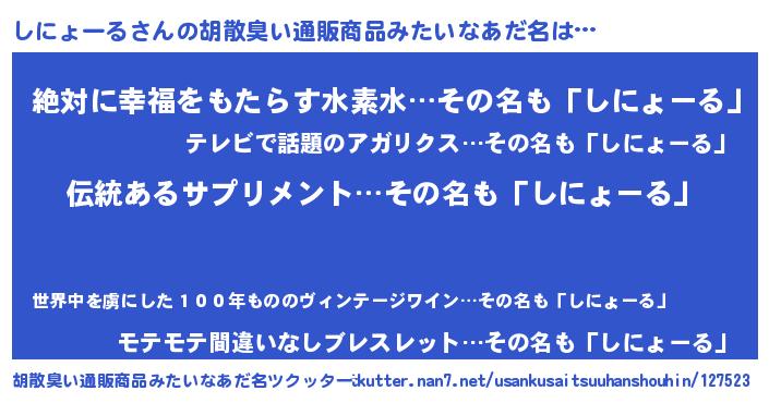 しにょーるさんの胡散臭い通販商品みたいなあだ名をツクッター!