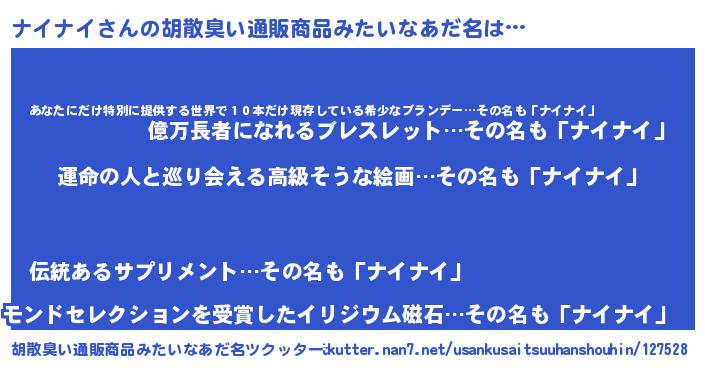 | 男性向けラノベタイトル風あだ名 | 『ナイナイに滅ぼされるだけの簡単なお仕事です』 |