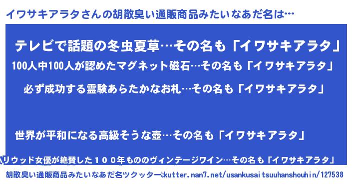 | ヒーロー風カッコイイあだ名 | 『スーパーイワサキアラタ』 |
