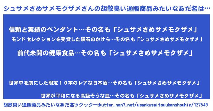 | 意味不明あだ名 | 『永久保存シュサメさめサメモクザメ』 |