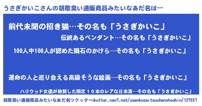 | ヘコむあだ名 | 『うさぎかいこ(苦笑)』『うさを』 |
