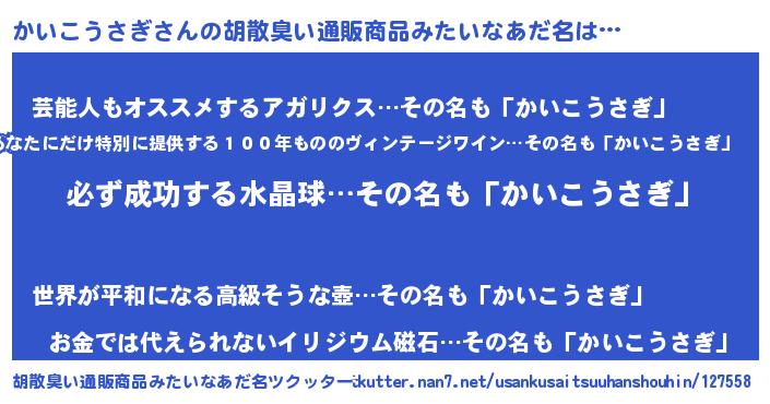 | 男性向けラノベタイトル風あだ名 | 『かいこうさぎの憂鬱』 |