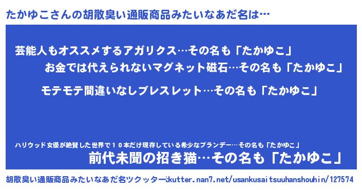 | ヒーロー風カッコイイあだ名 | 『スーパータカユコ』『ネオタカユコ』 |