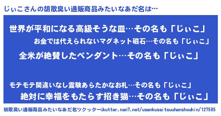 | 女子向けラノベタイトル風あだ名 | 『じぃこ様がみてる』『じぃこ伯爵の花嫁』 |