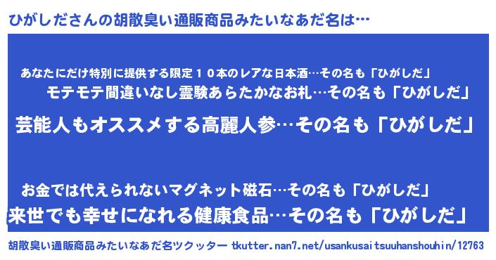 | ヘコむあだ名 | 『ひがしだ(小並感)』『ひがふぇ~』 |
