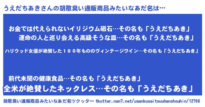 | 意味不明あだ名 | 『住所不定無職うえだちあき(12歳)』 |